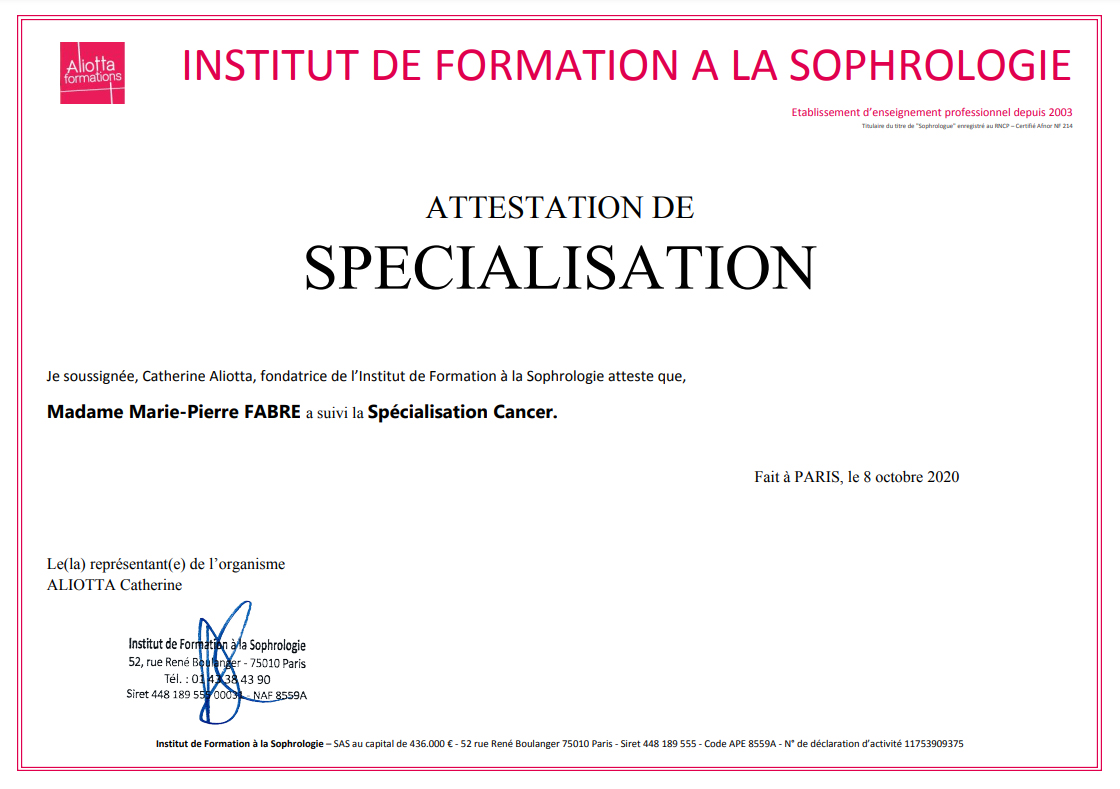 – Maîtriser les techniques sophrologiques spécifiques au cancer et aux troubles associés.